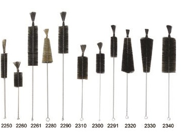 Escovas para limpeza de vidrarias em 100% de crina animal para limpeza de tubos, frascos, pipetas, provetas, balões e vidrarias em geral.