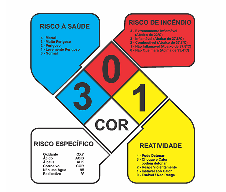 Embora não informe quais as substância químicas presentes no local, ele mostra de forma simples os tipos e os graus de risco determinados pela representação em cores. Em um rótulo, ele permite uma ideia rápida a respeito do manuseio do conteúdo representado.