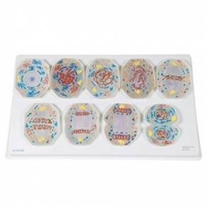 • Modelo confeccionado em resina plástica emborrachada ampliado 10.000 vezes. • Contendo 9 peças que ilustram a divisão celular cromossômica que forma a mitose.