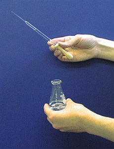 As pipetas de Pasteur de vidro devem ser utilizada em uma posição vertical ou quase vertical. O bulbo vai para cima, a ponta da pipeta fica apontada para baixo.